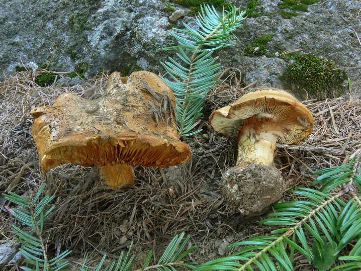 Per habitat e colore della carne "potrebbero" essere Cortinarius elegantior nel qual caso la carne del bulbo diviene rosa-rosso con KOH,nessuna reazione invece su altre parti deel carpoforo.