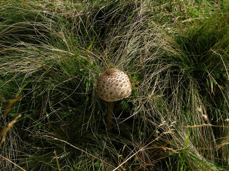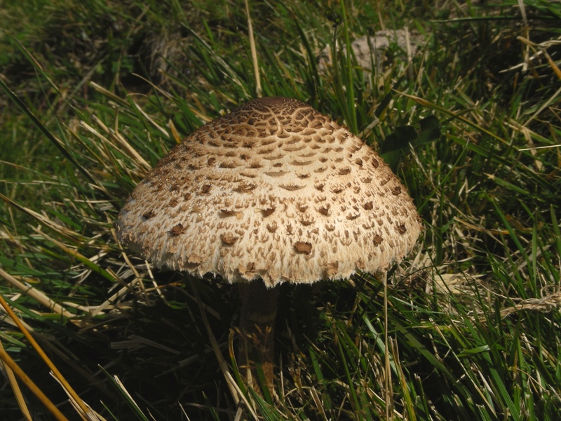 Iniziamo dal più vistoso e maestoso, Macrolepiota procera, che in pascolo assume spesso habitus massiccio e poderoso, con gambo mediamente più tozzo e meno slanciato: