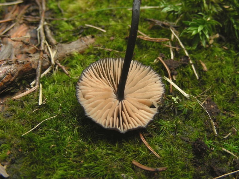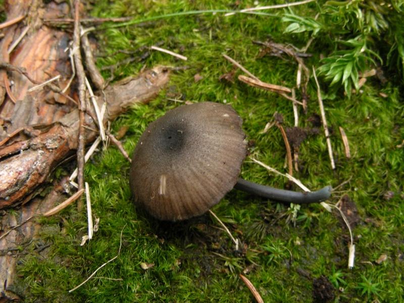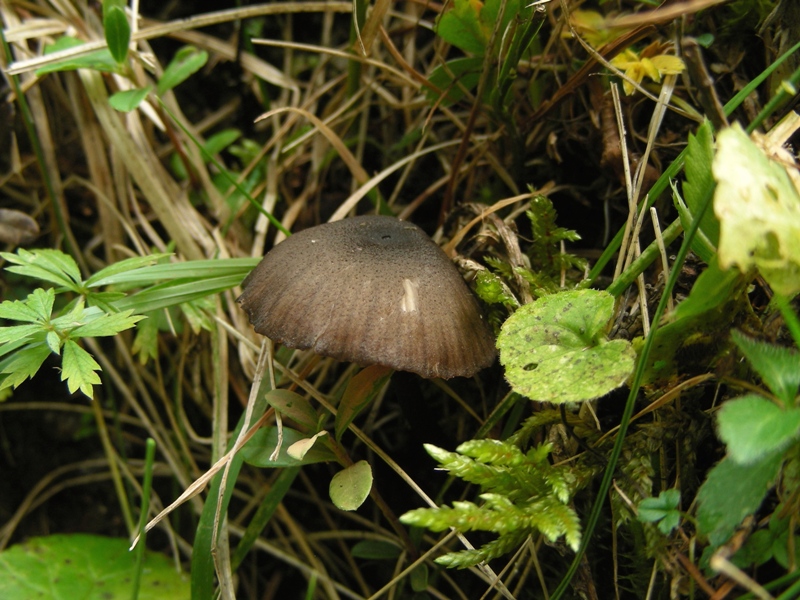 4)Solito misterioso e bellissimo entoloma, con tonalità bluastre. Altezza 5 cm circa, fragile, cappello nocciol/antracite e gambo di un cupissimo nero/bluastro che contrasta con le lamelle, bianche e rosate di spore: