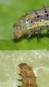 Le parti evidenziate saranno la nuova capsula cefalica appena terminata la muta.