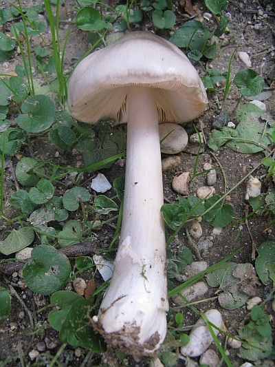 si tratta della comunissima Volvariella gloiocephala; tipico il suo crescere in terreni organicamente ben "concimati", campi incolti, orti, ecc.