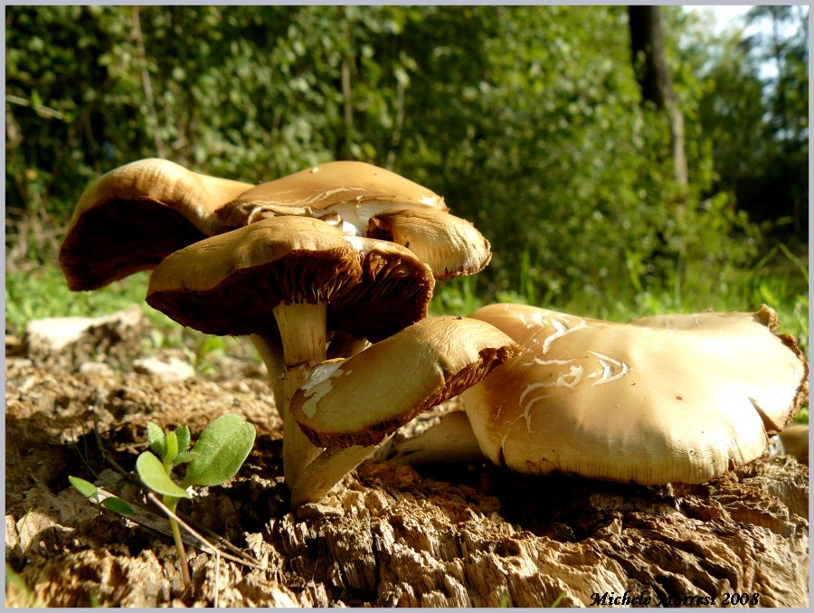 pochi giorni fa ho fotografato questi funghi, cresciuti sul ceppo di una pianta in riva ad un lago.