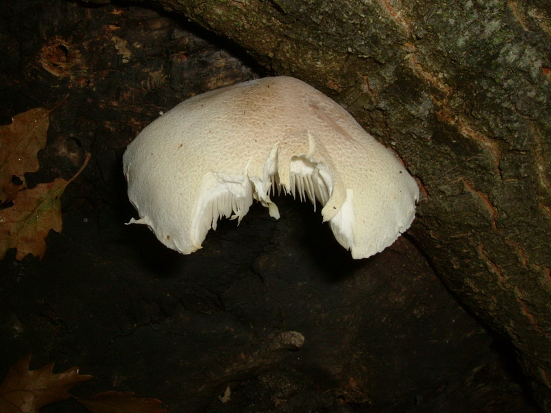 Ciao Simo, Lentinus lepideus ha lamelle seghettate, questo è Pleurotus dryinus.