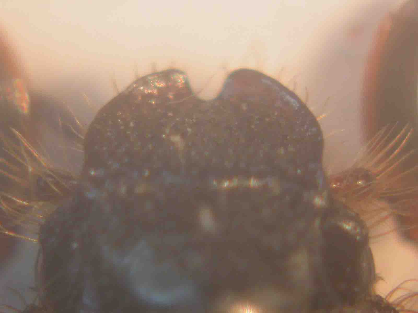 Foto (pessime, la mia attrezzatura è scarsa) dei clipei di Elaphocera, rispettivamente emarginata ed erichsoni, attraverso il binoculare
