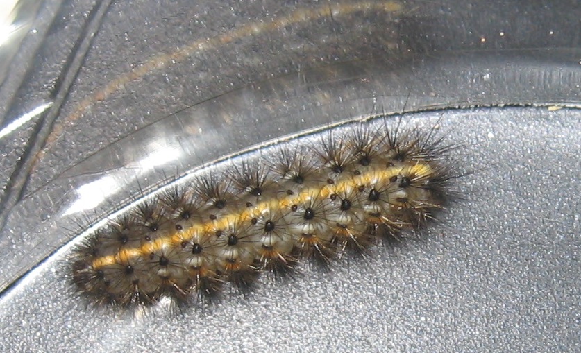 salve a tutti, il mio bruco (foto inserita il 26/11/08)ha fatto la prima muta,peli molto più lunghi e numerosi, colori più scuri. non sono riuscita ancora a capire di quale specie si tratta,invio la foto. non riesco a capire se mangia, come faccio? grazie Ps:scusate ma la foto non è bellissima!! Immagine: