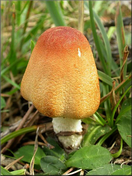 En esta foto vemos un ejemplar completamente desarrollado. En la primera imagen era difícil llegar a la conclusión de que era una Lepiota, en esta ya no, como imagino cual será tu respuesta: Lepiota ventriosospora D.A. Reid, apunto cual es su nombre actual según el Index Fungorum: