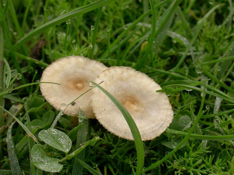 ancheio ho qualche dubbio... certo non sono proprio esperto come voi.. però il colore del cappello (forse la pioggia??) mi sembra troppo chiaro , non vedo umbone centrale, le lamelle sono troppo bianche e il gambo non mi sembra da marasmius oreades... Qualche esperto che ci da delucidazioni???