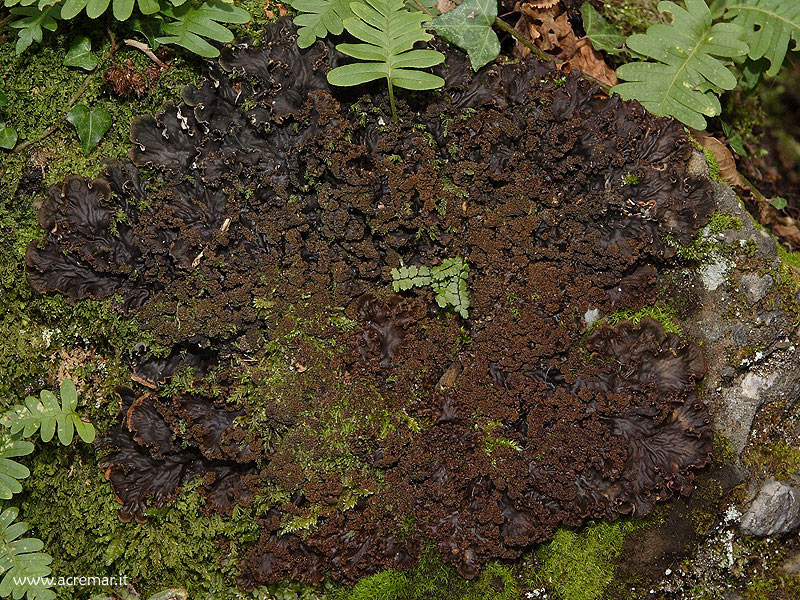 ...è una stupenda e direi quasi drammatica foto di Peltigera praetextata (bagnata). Di solito non mi azzardo mai ad identificare una Peltigera a livello di specie se fotografata solo da sopra e da bagnata, ma qui sono evidentissimi gli isidi che coprono le parti centrali del tallo. ciao PL |