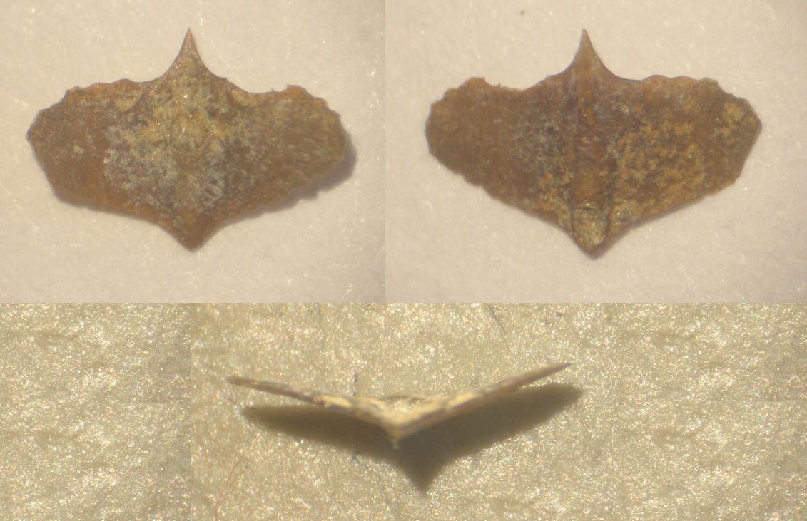 Ciao a tutti! Immagino che questo reperto possa essere una scaglia o squama di qualche pesce, era in un sedimento ricco di vertebrine! Come si può vedere nell'immagine ha una forma a V, con un corpo più spesso al centro. Tale corpo centrale è attraversato da un canale che nella faccia concava sbocca in un foro mediale, mentre nella faccia convessa è spostato distalmente. Qualcuno sa dirmi se si tratta realmente di una scaglia o squama e soprattutto a chi può essere appartenuta? Grazie!