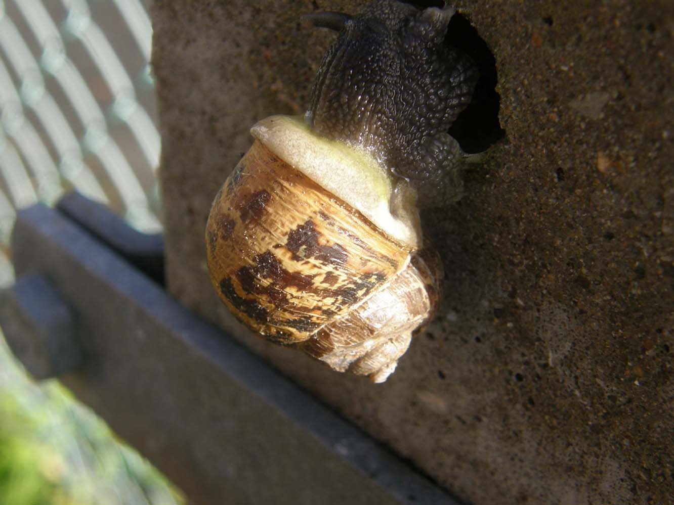 No, questa è invece Helix pomatia con distribuzione più limitata all'arco Alpino e al centro Europa e spesso raggiunge quote più elevate. La H. pomatia si distingue per essere generalmente più grande e per avere una colorazione marrone più uniforme. A volte anche Cornu aspersum ha una colorazione uniforme ma tendenzialmente verso il giallo.
