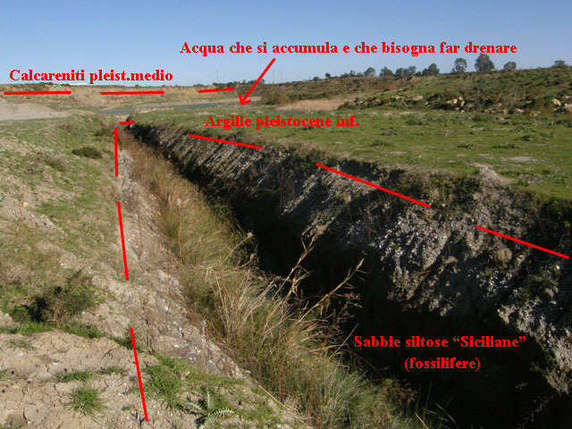 Il fondo argilloso della cava si riempie sovente di acqua piovana che poi bisogna ahimè far drenare. A tale scopo i cavatori realizzano trincee profonde che fanno confluire le acque in un ruscelleto. Tali realizzazioni sono il risultato del MASSACRO e della DEFINITIVA distruzione, di milioni, se non miliardi, di esemplari di conchiglie fossili, talora assai interessanti e rare!