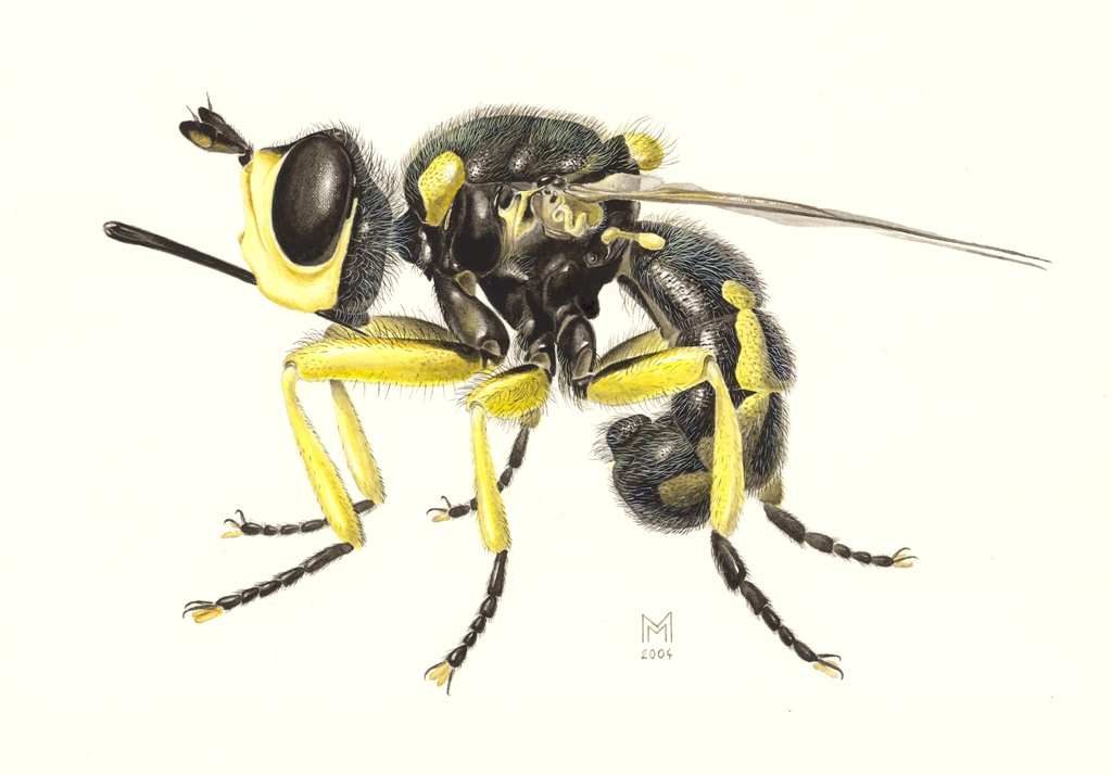 Io partecipo soltanto alle discussioni senza postare nulla, con un certo rammarico, a volte, perché non sono un fotografo... però so disegnare, così qualche giorno fa mi è venuto in mente che, perché no?, potevo postare un disegno... Il disegno in questione (ad acquerello) raffigura un Conopide piuttosto raro, Dalmannia aculeata, di cui mi sono occupato recentemente. E' una specie diffusa in tutta Europa e qua e là in tutta Italia, ma di cui si incontrano sempre singoli individui e sempre per caso (ma ho scoperto che, insieme ad altre specie di conopidi, fa hilltopping e quindi negli ultimi anni ho potuto fare tutta una serie di osservazioni interessanti in un sito qui vicino Roma). Non se ne conoscono ancora né gli ospiti né la larva (in realtà, le larve dell'intera sottofamiglia Dalmanninae sono ancora ignote). Nel corso delle mie osservazioni mi sono affezionato particolarmente a questa specie, un insetto molto particolare anche tra i conopidi, e gli ho dedicato questo disegno... spero vi piaccia! Ciao Maurizio