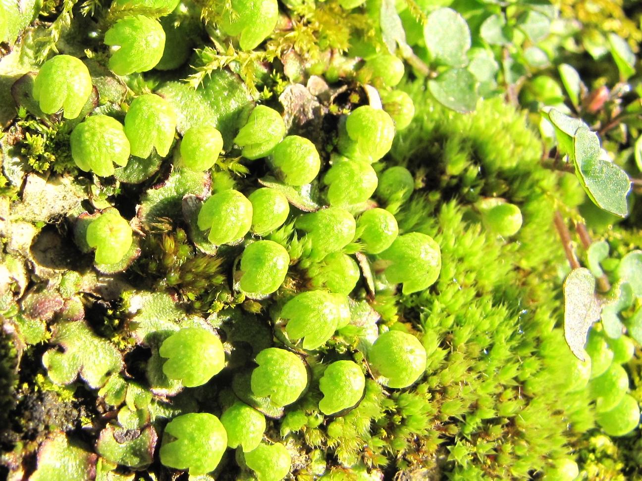 (Lunularia si presenta differamente. Le spore sono contenuti in una custodia -non so veramente come se dice in italia - a forma di mezza luna.)