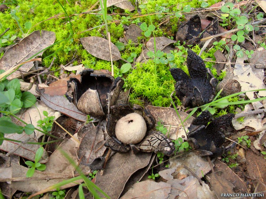 Endoperidio sferico, bianco con poro aperto La faccia interna dell'esoperidio, nero in vecchiaia, doveva essere biancastro grigio, come si intravede da questa foto Immagine: