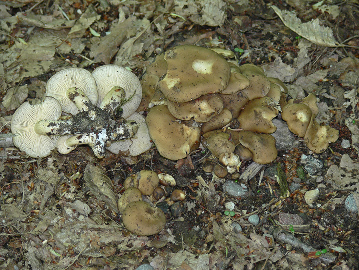Ai margini del bosco , in vicinanza di Alnus glutinosa e Quercus robur gruppo di macromiceti con crescita cespitosa ; alcuni carpofori si presentavano connati alla base, cuticola liscia.