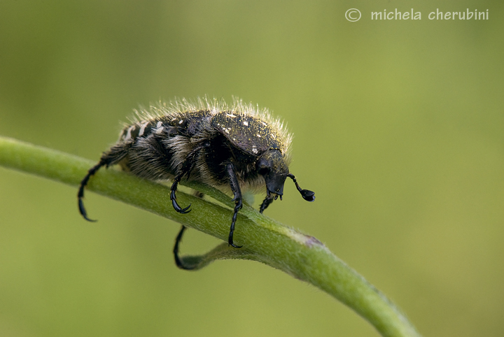 Ciao michela, si tratta di un coleottero....sembrerebbe un Oxythyrea funesta ma aspetta conferma sulla specie....