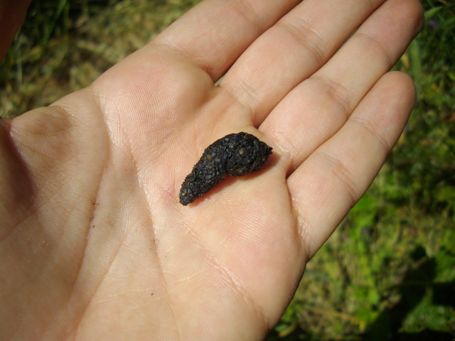 Se pò aiutare, a una quindicina di metri più in la, c'è n'era un altra alla bella vista su un pietrone. Praticamente identica, sia come dimensioni, che come aspetto (nera con resti marroncini).