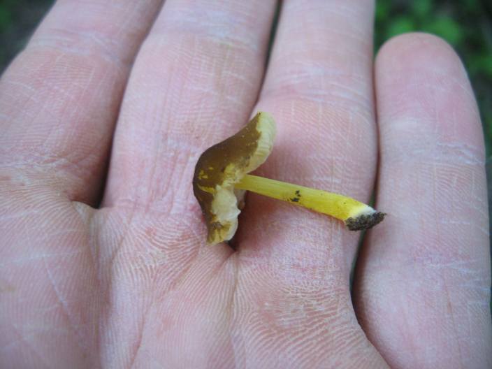 vi propongo un funghetto ritrovato in un bosco molto ombroso, ai piedi di un albero di cui allego foto perchè non lo riconosco. buco della balena, primo appennino piacentino