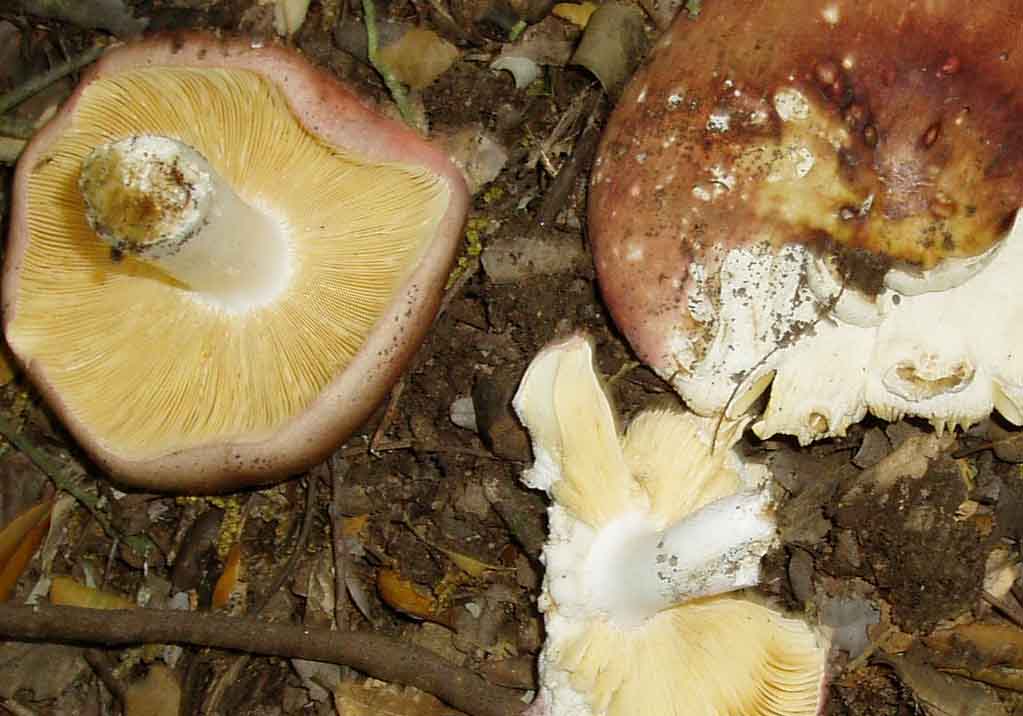 volevo solo mettere in risalto l'odore e il sapore poco marcati della prima Russula. Nella R.maculata solo in pochissimi eventi la carne è dolciastra normalmente è sicuramente acre.