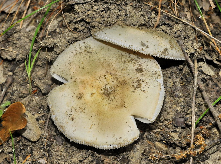 Cappello liscio bianco sporco 5/6 cm, con lievi riflessi blu-verdastro, margine scannellato. Lamelle bianco-crema. Gambo sottile, cilindraceo. Sapore dolce, nessun odore particolare, Suppongo che appartengono al gruppo delle Griseinae, potrei azzardare R. medullata (?), però c'era presenza anche di Cistus. Reazione brunastra al solfato ferroso.