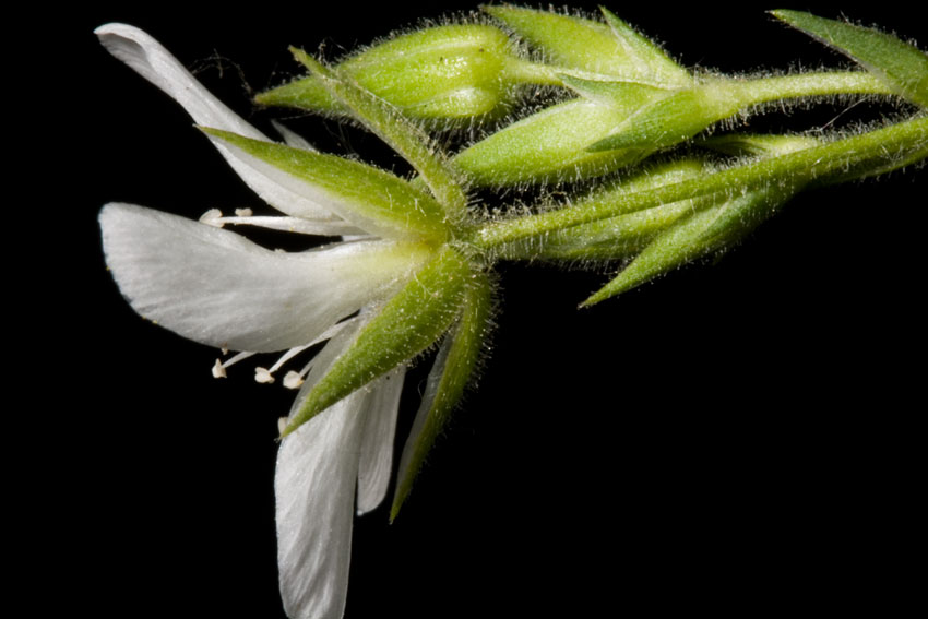 Le piante del Catria hanno una fitta pelosità ghiandolare che ricopre l’infiorescenza e parte del fusto. Essa decresce nella parte inferiore, in particolare nelle foglie basali, che risultano essere quasi glabre o comunque coperte da pochi e sparsi peli ghiandolari, carattere tipico e discriminante della ssp. clandestina rispetto alle altre due ssp. italiane. Immagine: