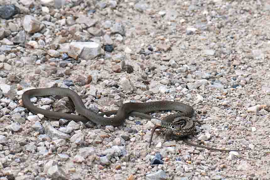 Ho visto la scena del rettile che rincorreva e prendeva la lucertola, incredibile! La velocità della scena mi ha colto alla sprovvista, ma il resto l'ho fotografato.