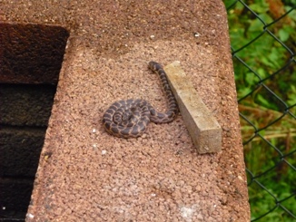 tenete presente che sarà stato lungo dai 40 ai 50 cm....è rimasto immobile per circa 4 minuti tutto acciambellato con la testina alzata. Poi si è mosso molto lentamente e rimaneva aderente ala parete. Abbiamo cercato di prenderlo ma non siamo riusciti proprio per l'aderenza. Poi è caduto nel prato incolto ed è impossibile cercarlo.