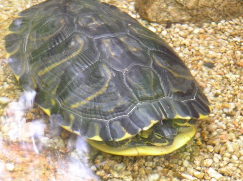 La scorsa settimana lungo un ruscello del settore sud - orientale della sardegna ho fotografato questo esemplare di Trachemys scripta elegans, anche se non sono sicuro della corretta determinazione...