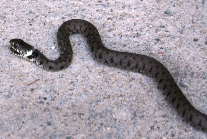 Sicuramente Natrix Natrix (Biscia dal collare) serpentello bellissimo e del tutto innocuo.