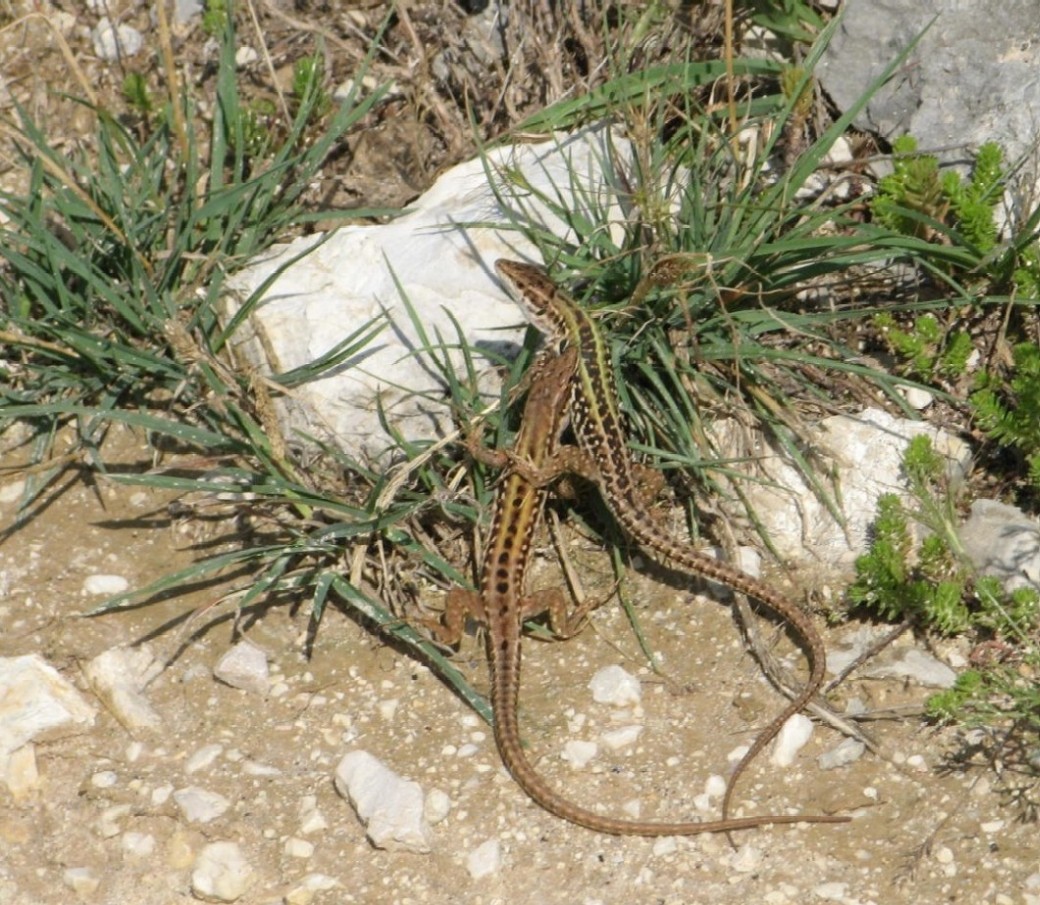i lacertidi maschi tra di loro si azzuffano abbastanza aggressivamente e spesso si lasciano dei segni visibili. Pure l'accoppiamento è abbastanza violento e lascia dei segni vistosi sulla femmina |