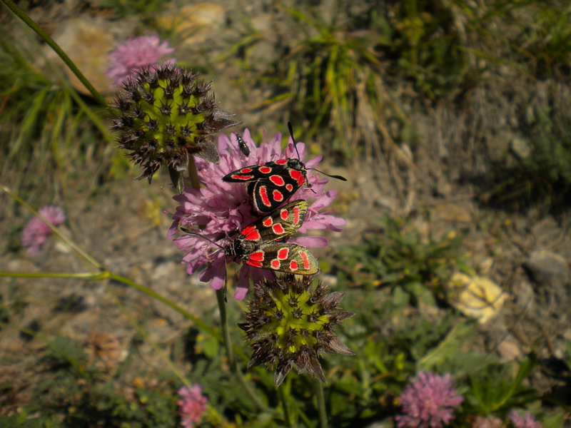 Nei prati dell'appennino a 1500 mt.Sò che è complicato deterninare,ma io posto ugualmente.I fiori su cui si sono posate queste Zygaene sono di Scabiosa lucida?? Grazie.