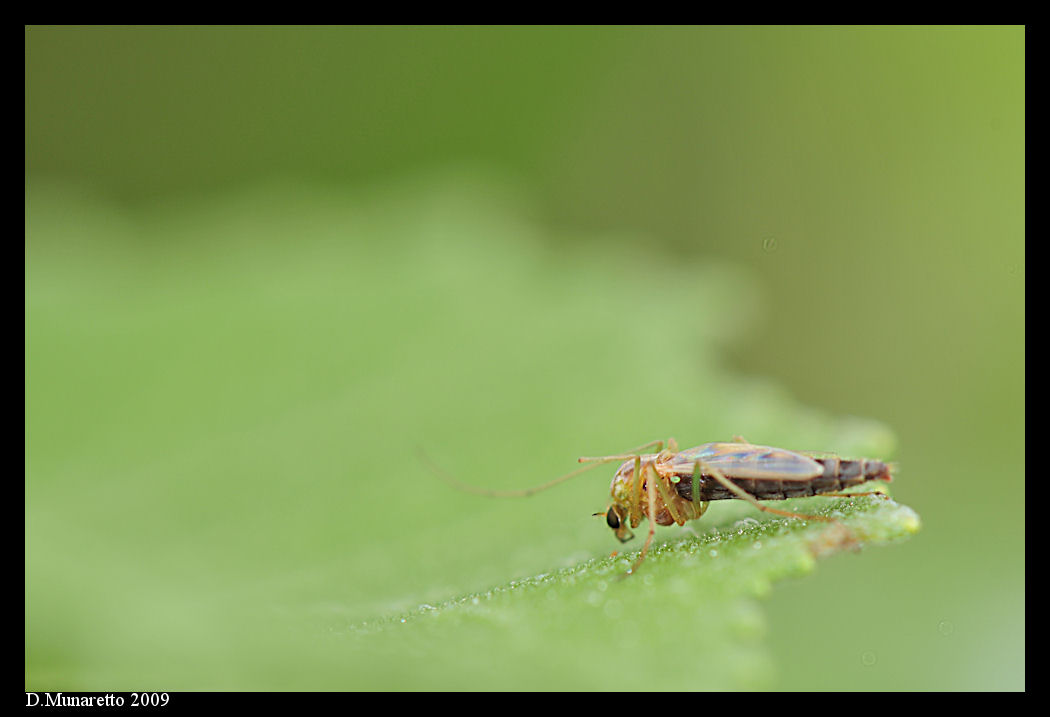 Scatto eseguito con diaframma f11, ma ripreso in modo che dietro l'insetto non vi fosse nulla e tenedo una inclinazione che radesse la superficie della foglia, e da questo l'effetto della ridotta profondità di campo!