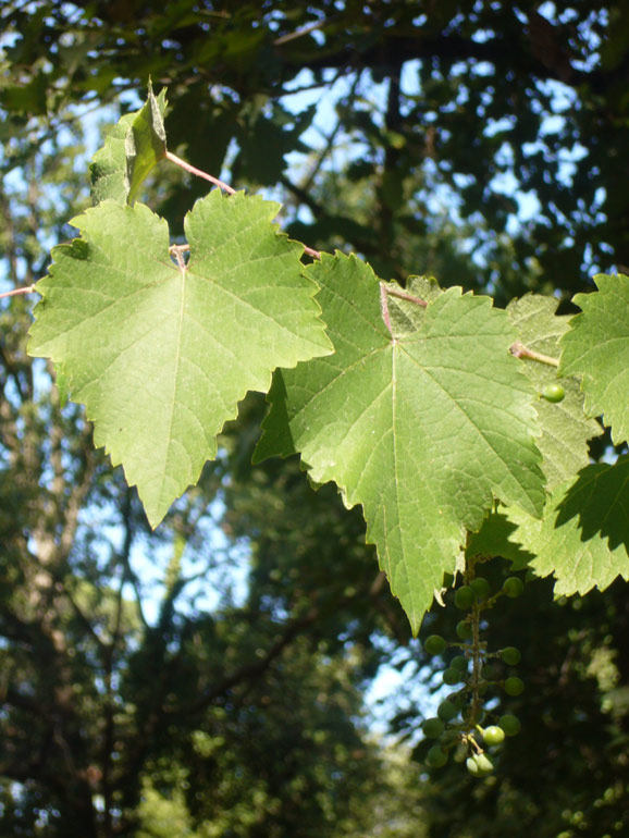 Provo anch'io a "sparare" qualche determinazione: 1) V. labrusca (foglia a pagina inferiore apparentemente tomentosa, un po’ trilobata, seno picciolare stretto) 3) V. riparia (foglia con denti maggiori in corrispondenza dei nervi principali, seno picciolare aperto)