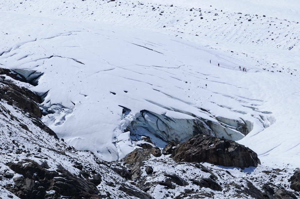 Escursionista solitario con crepacci. Vi assicuro che, pur ridotto, il ghiacciaio è ancora uno spettacolo unico.