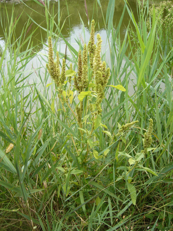 Ecco un'altro Amaranthus, sembrerebbe il retroflexus, ma l'aspetto è un poco diverso; oltre alla spiga terminale + lunga di quelle laterali, la pianta pare "+ fresca, ovvero + verde, ovvero meno pubescente" inoltre, ma questa è forse solo una mia impressione, i fiori della spiga sono disposti con un "disordine organizzato in modo diverso" dai normali A.retroflexus... comunque attendiamo l'esperto