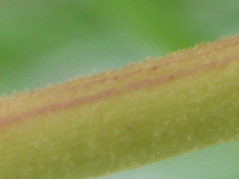 Infine il fusto... Il colore è variabile in A. retroflexus, passando dal verde più o meno spallidito al rosso più o meno acceso. Per quanto riguarda la pelosità, in aspetto tipico, A. retroflexus si presenta pubescente-tomentoso. La foto 7 individua una pubescenza ridotta rispetto al tipico (ho rinvenuto esemplari con pubescenza ancora più ridotta!); mentre la foto 8, mette in risalto un aspetto non inusuale: la pelosità solo sulle nervature.
