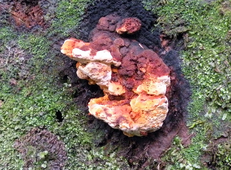 Si credo anchio, la prossima volta strofinaci sopra un dito e poi annusa,odora di anice.Vegeta sempre nella parte troncata delle conifere(anche se ho qualche immagine di vegetazione a lato di ceppaia...credo poco comune).In vecchiaia il colore arancione diviene sempre più scuro fino a diventare nero carbone.