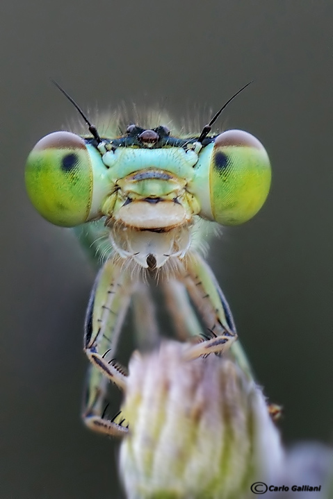 ciao e grazie a tutti la prima è senz'altro la più difficile da fare sia per le dimensioni piccole della testa delle damigelle sia per il posatoio che essendo uno stelo è comunque soggetto al minimo movimento Le mantidi erano su una superficie molto riflettente con colori chiari e non ho avuto bisogno di pannelli e per le antenne va beh se vuoi riprendere bene la faccia devi tagliarle X ellelle : fotograficamente ora si tende di più ad ambientare il soggetto e qualcosa bisogna pur tagliare in queste foto