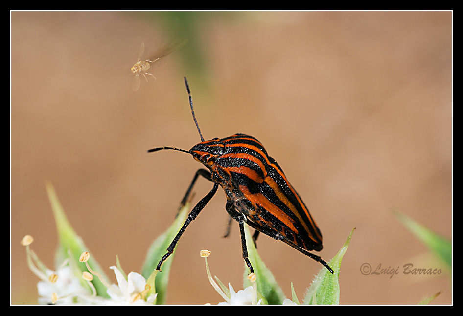 Intendevo descrivere ironicamente un'ipotetica affermazione del dittero in volo nei confronti del Graphosoma. Alla luce della posizione e della postura dei soggetti mi era sovvenuta la precedente citazione, e l'avevo quindi riportata .