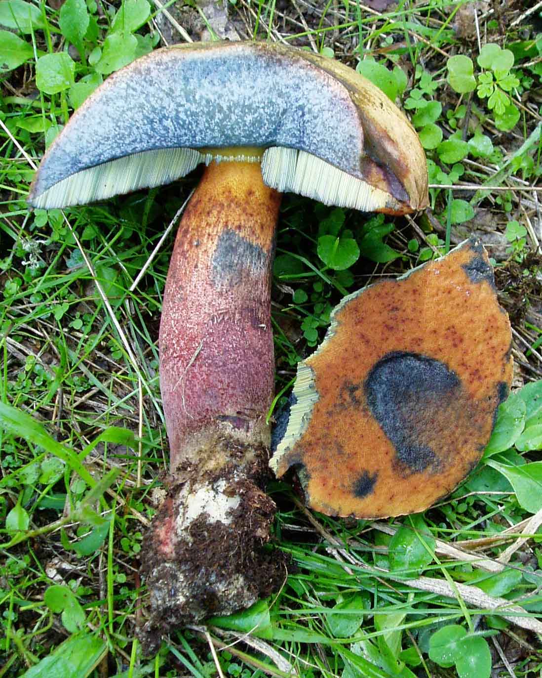 Ciao, prime foto si vede bene la linea di Bataille e un pò di reticolo all'apice del gambo e di conseguenza Boletus luridus forma queletiformis, vedi libro rosso pag. 149. Batman |