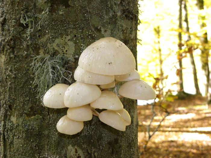 Questa mattina, in Foresta Umbra (Gargano- FG) mi sono imbattuto in questa famigliola di funghi attaccati sulla corteccia di un faggio.