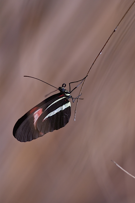 Molto bella e suggestiva, anche se forse l'avrei vista meglio orizzontale e magari senza la velatura del filo d'erba fuori fuoco che taglia la farfalla, ma immagino fosse quasi impossibile evitarlo...