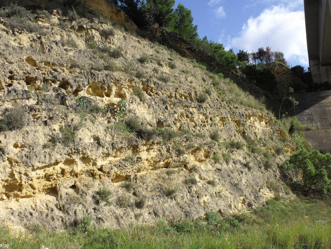 Che altra informazione vorresti avere dall'affioramento? Perchè temo che più di tanto non si possa dire perchè le bio-calcareniti sono ricoperte da quello strato di ossidazione grigiastro che ostacola la visualizzazione delle strutture sedimentarie. Alcune volte questa ossidazione aiuta l'osservazione, ma non sembra questo il caso! Ivan